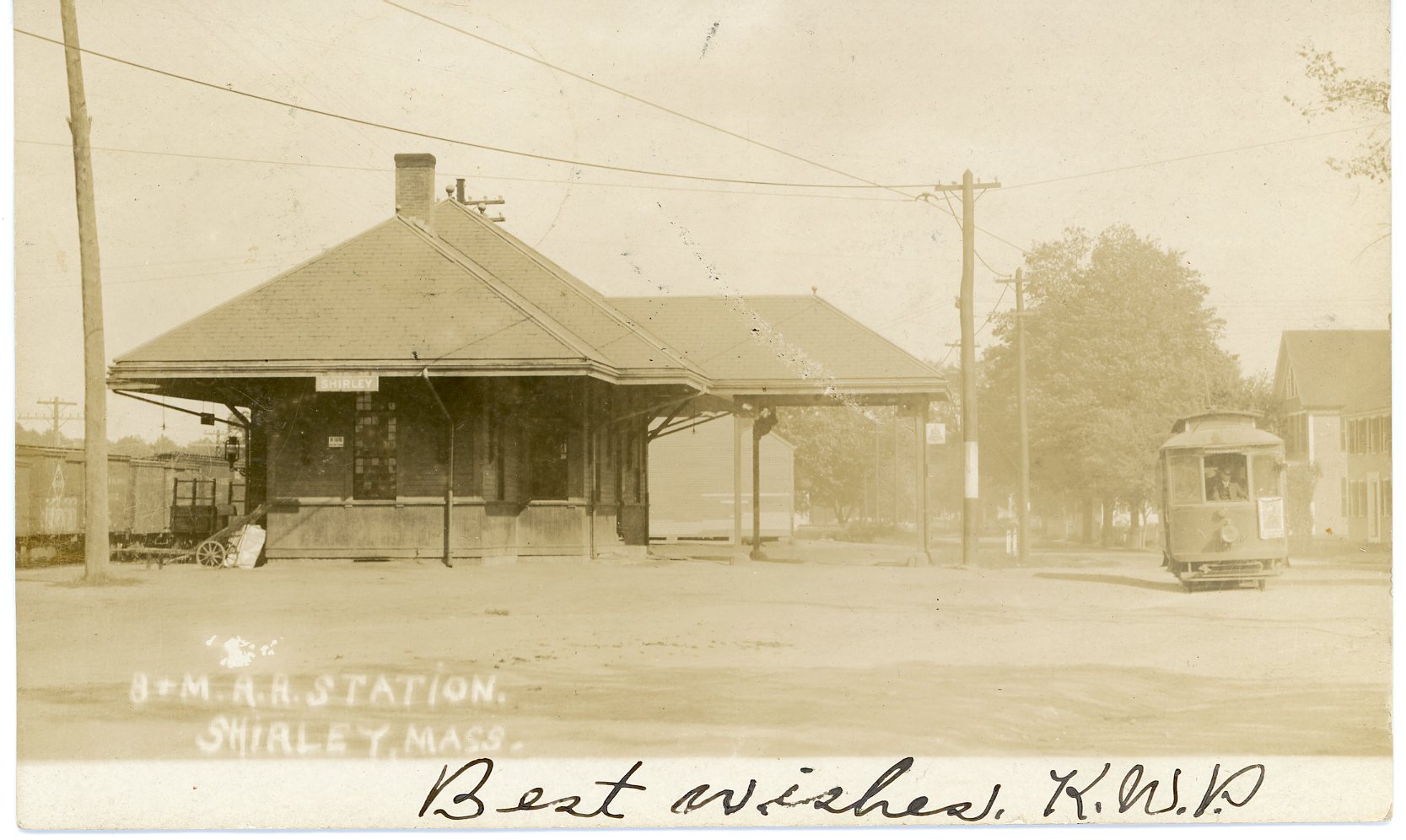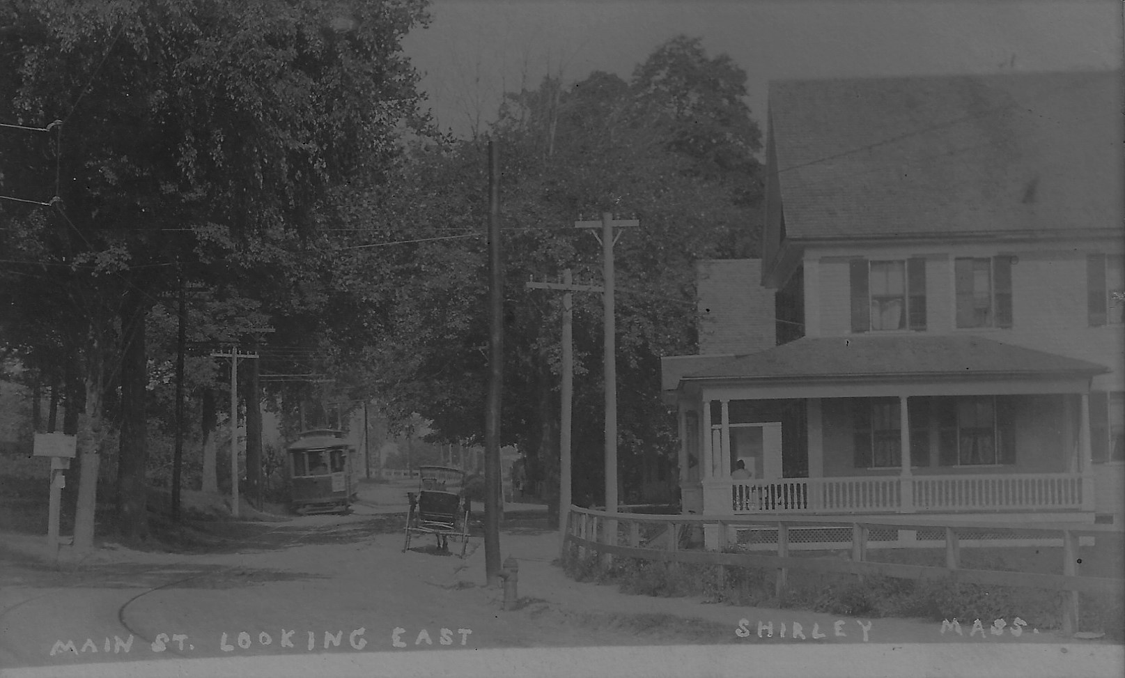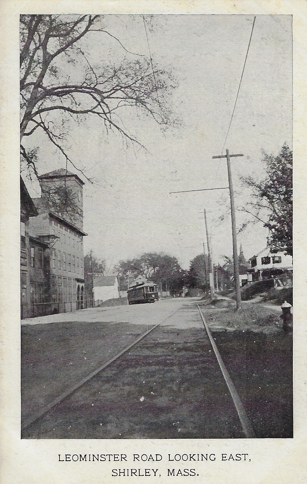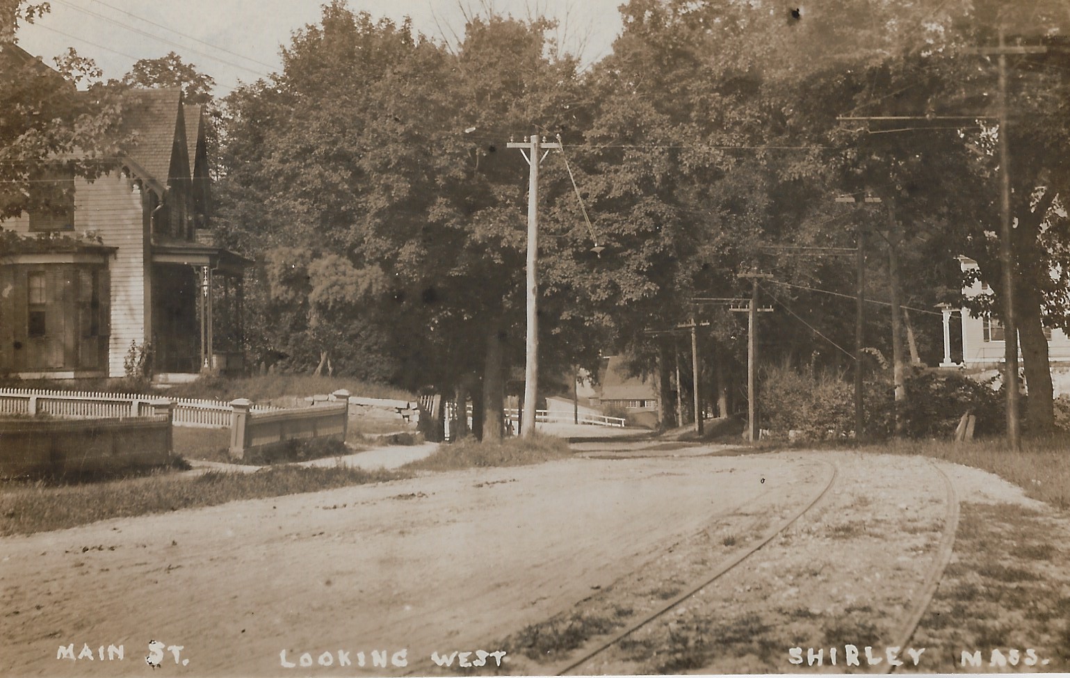 In the early 20th century, folks who wanted to travel to Ayer or to North Leominster from Shirley could take the trolley that drove right down the middle of Main Street. See if you can spot the tracks or the trolleys in each of these photos.